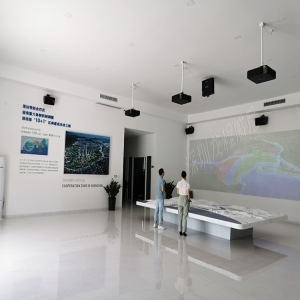 該項目相對較小,深圳龍程威尼根據用戶需求,以及營銷中心的行業性質,以聲光電數字沙盤展現為主,側方位墻體上以投影機進行輔助展示說明。